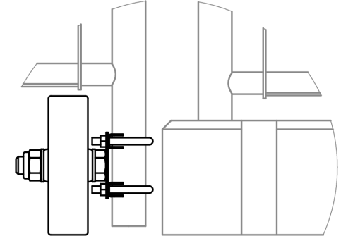 Достаточно прикрутить ролик на нижнюю часть столба и хомут Clamp 38 на верхнюю (хомут выполняет роль петли, в которой прокручивается столб при открывании и закрывании).