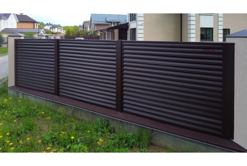 А благодаря защитно-декоративному полимерному покрытию, забор-жалюзи прослужит и сохранит свой первоначальный внешний вид даже спустя длительное время после установки.